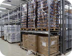 Собственное высокотехнологичное производство стеллажных систем. Выпускаемая продукция имеет сертификаты на соответствие международным стандартам качества 9001:2000.